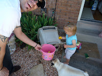 On Sunday morning we woke up and let the kids find their baskets Zachary got a Ben 10 watch that he has been wanting forever. And Zoey got an umbrella because she loves to play with Zachary's. After that we went out to the end of the street to have our annual easter egg bust. We meet up with all our neighbors and crack eggs, it is a tradition that I have been doing my whole life. My grandpa even remembers doing it when he was a little kid. And when we dye our eggs we don't use the colorful dyes we use plants and flowers, I have never done it any other way.